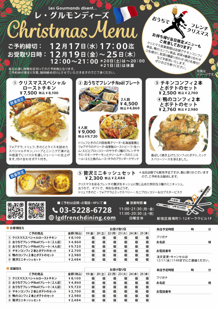 12 Nov クリスマスメニューご予約受付中 Posted at 00:20h in Campaign, Party 2 Likes Share オンラインフォームからもご予約を受付ています。 オンライン予約 Read More